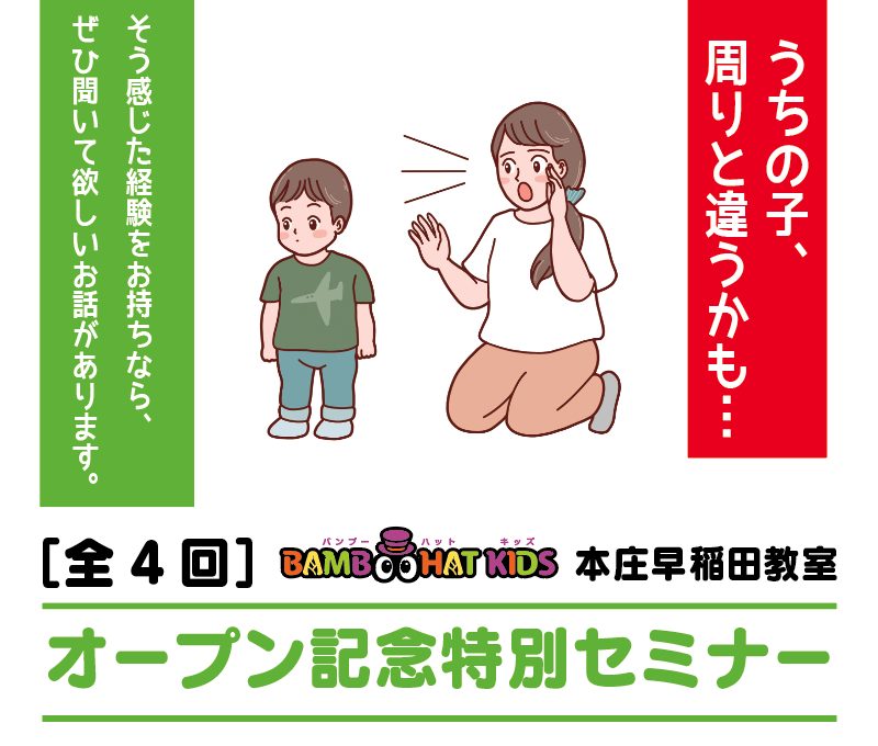児童発達支援バンブーハットキッズ本庄早稲田教室のオープンを記念したセミナー(全4回・無料)を開催いたします。