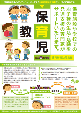 保育所等訪問支援は、発達に遅れがあったり、問題を抱えているお子様が保育園や幼稚園、学校などで快適に集団生活が行えるように、具体的な支援方法を提案できる「児童発達支援のスペシャリスト」が、お子様と保護者様、各施設や学校関係者様をサポートするサービスです。 保護者様のご要望によって、保育所、幼稚園、小学校、特別支援学校、認定こども園や乳児院、児童養護施設など、様々な施設で支援を行うことが可能です。