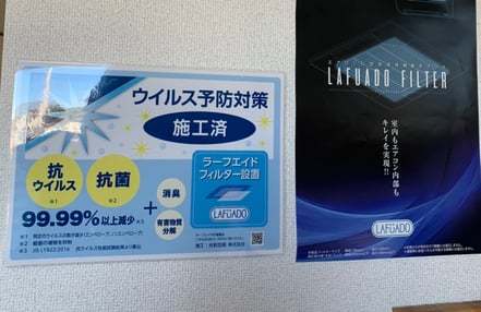 また、すべてのエアコンにウイルス予防対策として効果的といわれるラーフエイドフィルターの設置も完了しております。